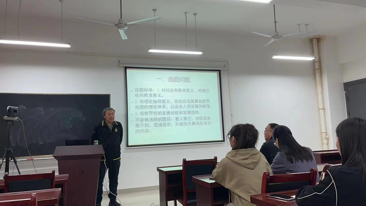 柏桦教授从论文选题问题切入,通过具体感人的事例,阐释了论文的写作要立足于时代的发展变化,以历史条件为转移。论文选题不仅要于社会个人有教育意义,也应具有理论指导意义,体现世界性的发展经验和发展趋势,展现马克思主义中国化时代化的最新成果。柏桦教授强调,要重视资料的收集与取舍,重视文章的组织与层次设计。项目选题的确定既不能过于宏大,但也不能局限于一点,要善于看到问题交汇的“刃点”。