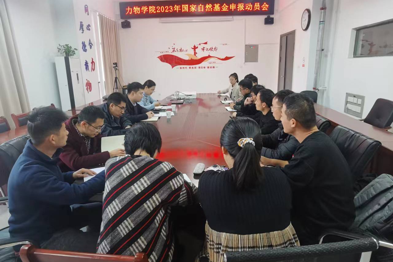 为做好力物学院2023年度国家自然科学基金申报组织工作,提升基金申报书撰写水平,11月10日,力物学院在明道楼A318会议室举办了基金申报动员会。会议邀请了校科研部副部长程刚作辅导报告。学院副院长卢小雨及部分青年教师参加了本次活动,会议由学院副院长高娟主持。