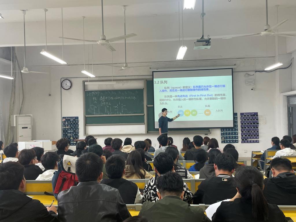郑文军主讲的是《数据结构》课程中的队列相关内容。他介绍了队列的基本概念,详细讲解了顺序队列、循环队列和优先级队列等原理和基本操作,并结合精选的例题分析和讲解帮助学生及时消化,更好地掌握课程讲授内容。郑文军备课充分,准备了教案、实际案例等各种教学素材;教学过程中,课程内容讲授流畅,系统、清晰、全面展示了教学内容,重难点突出,语言表达生动且富有感染力,思政元素有机融入教学,与课程教学内容相得益彰;能够联系实际,运用启发式的创意教学方法把复杂问题简单化,课堂气氛活跃,师生互动积极,达到了较好的教学效果,展示出较强的教学功底和课堂管理能力。