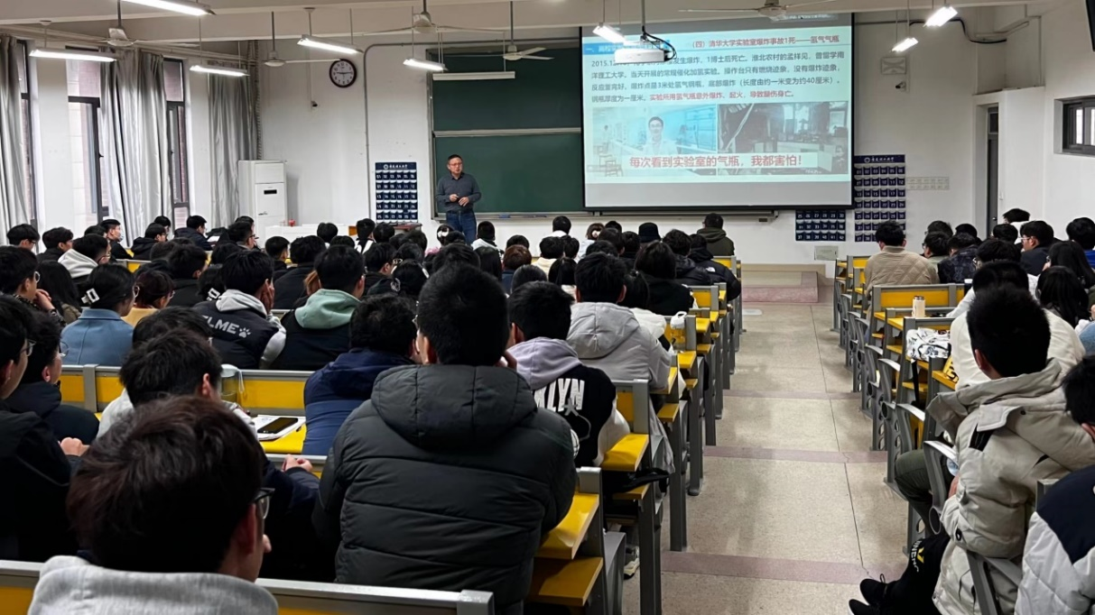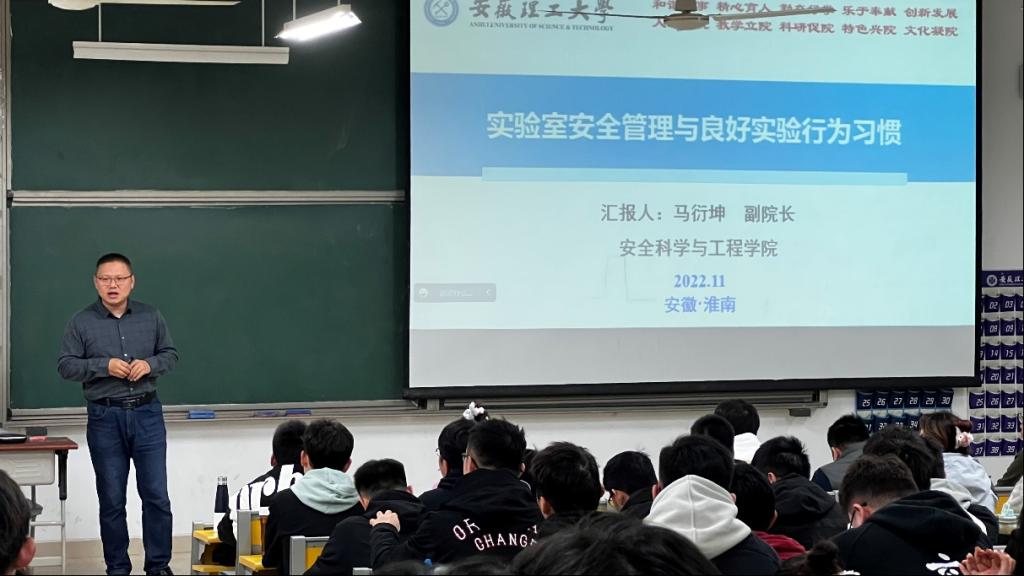 为加强实验室安全管理,提高实验室人员安全意识、培养研究生良好的实验行为习惯,11月23日上午,安全科学与工程学院副院长马衍坤在明理北216教室作了题为“实验室安全管理与良好实验行为习惯”的报告,报告会采用线上线下形式召开。2022级安全专业研究生约160人参加了线下报告会,2020级、2021级全体安全专业研究生参加了线上报告会。