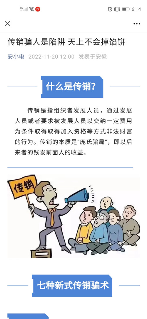 线上线下齐宣传 学院微信公众“安小电”在线上积极发布推文宣传反传销知识,收获了众多的关注、转发和评论;同时,学院组织志愿者线下向同学们宣传反传销知识,向学院学生寝室发放反传销知识宣传单,提醒同学们时刻做好反传销的准备,积极创造安全的美好校园。