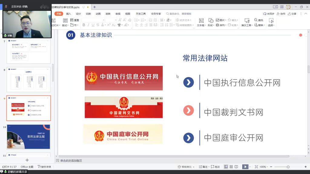 为了增强学生的法治观念,提高学生的法律意识,12月11日下午,材料科学与工程学院特邀学院2019届优秀校友、江苏诚鑫律师事务所执业律师舒鹏开展法律知识专题讲座,学院团委书记、辅导员和各年级200余名学生线上听取讲座。