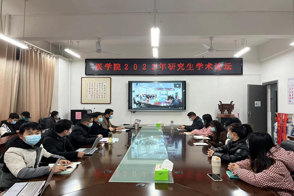 为营造良好的学术氛围,展示研究生阶段性学术成果,激发研究生开展学术研究的热情,12月11日上午,医学院在崇仁路C114会议室利用线上线下相结合形式举办了2022年研究生学术论坛。学院院长胡东、研究生辅导员和全体研究生参加会议。