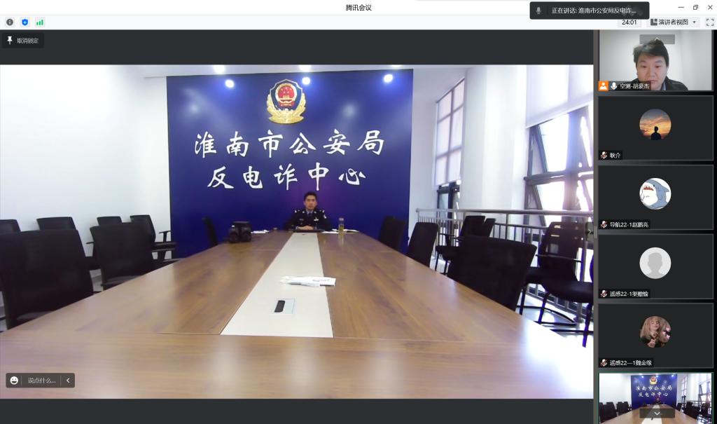 为增强学生防传销反欺诈意识,提高法制观念,积极营造平安和谐的高校育人环境,12月18日下午,空间信息与测绘工程学院邀请淮南市公安局反电诈中心副主任徐虎开展防传销反欺诈宣传教育讲座,学院共计200余名学生线上参与了此次讲座。