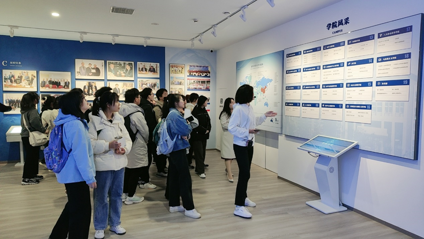 在实践环节,授课教师带领我校大一学生代表30余人共赴校史馆和行政楼参观。档案铭记伟业,历史昭示未来,校史馆是昨日之“安理”的精神丰碑。讲解员同学借助一件件、一幅幅记录着学校发展变迁的实物、图片、文献等档案资料,生动诠释了一代代安理人团结奋进的精神面貌,深情展现了安徽理工大学志存高远、追求卓越、服务地方的拳拳深情;行政楼则是今日之“安理”的运行中枢,在行政楼参观环节中,授课教师化身“领队”,通过讲解与实地观摩,带领同学们了解学校日常的组织运行管理机制,从而帮助学生认识到平静祥和的校园生活背后有众多师长的支持与付出,进而切实增强学生爱校荣校的精神与使命担当。