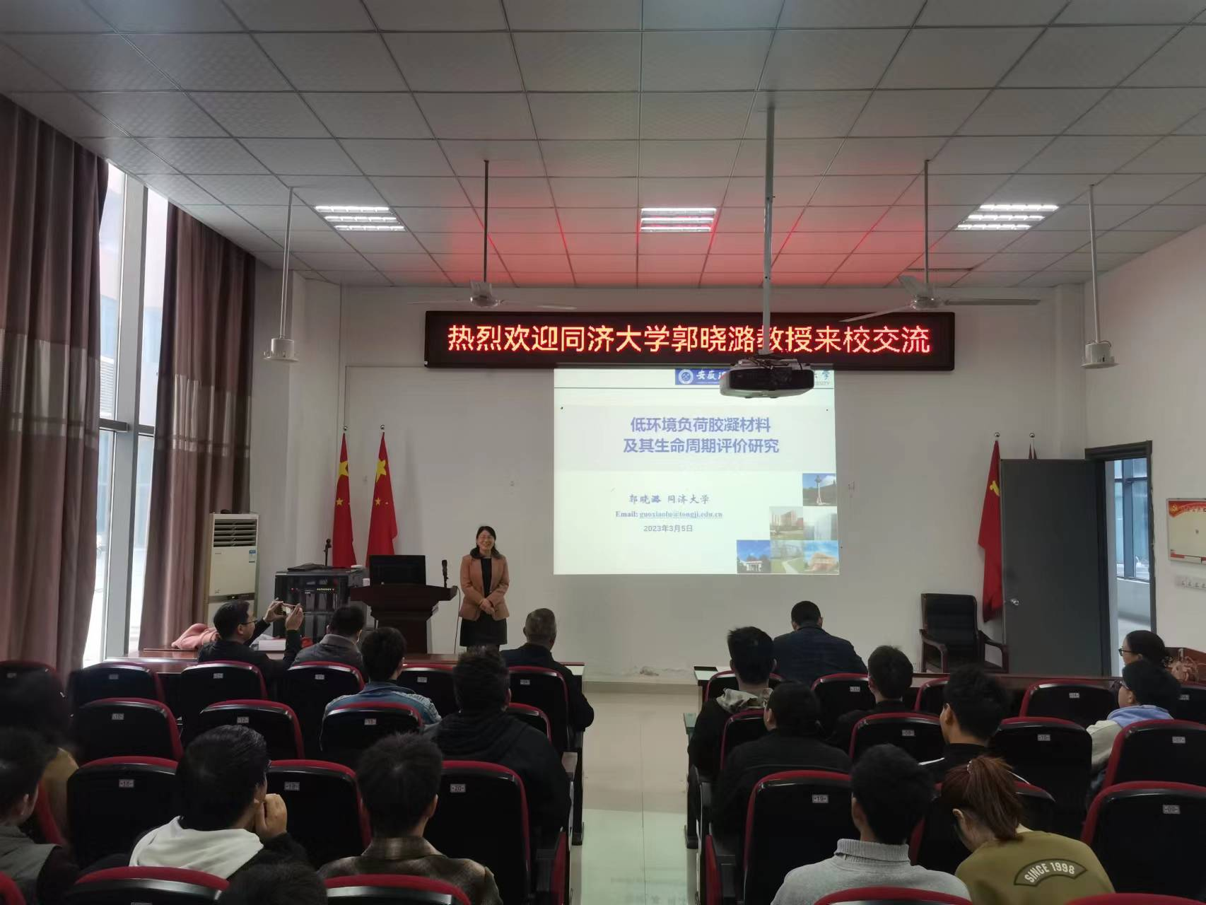3月5日,应学校科研部和材料科学与工程学院邀请,同济大学郭晓潞教授来校交流。郭晓潞教授在材料学院B118报告厅作了题为《低环境负荷胶凝材料及其生命周期评价研究》的学术报告。报告会由材料学院院长闵凡飞主持,材料学科教师、研究生和本科生200余人参加了报告会。
