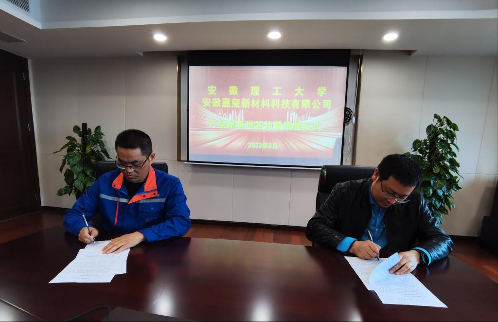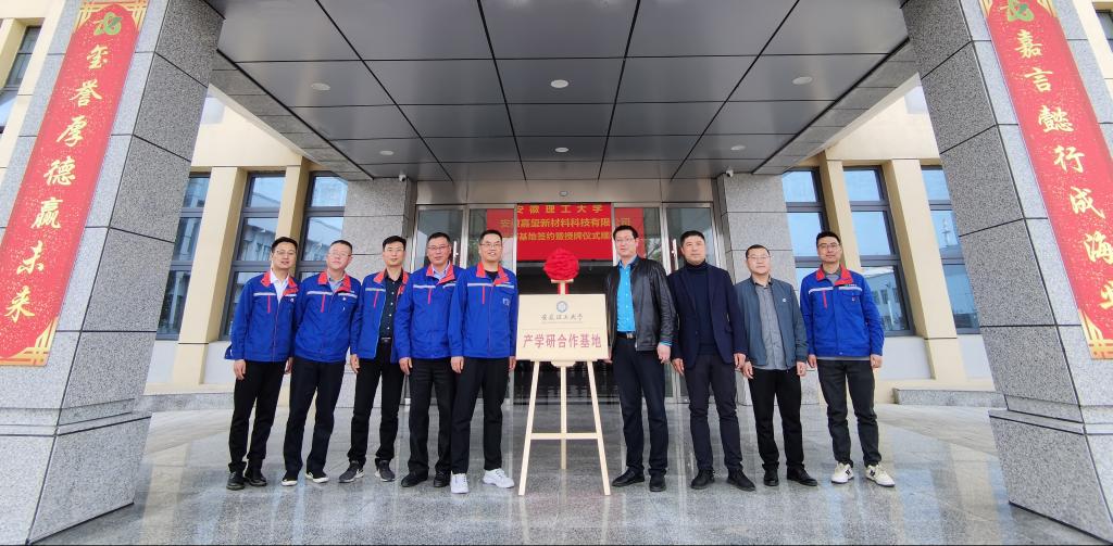 3月8日下午,材料学院副院长刘令云一行赴安徽嘉玺新材料科技有限公司举行产学研基地签约暨授牌仪式。安徽嘉玺新材料科技有限公司董事兼总经理钟金华、副总经理陈亚飞、副总经理胡学山、董秘办主任阮鹏等参加了签约暨授牌仪式。