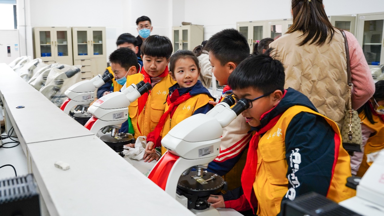 简单的欢迎仪式后,志愿者们带领小朋友们参观安徽理工大学地球与环境学院地学展厅和岩石矿物实验室,志愿者先从地质年代说起,带领小朋友们回望了四十多亿年的地质历史;接着从淮南地层开始讲解,解释了煤炭的演化形成过程;最后带领大家逐个参观了展厅里的矿物标本,观看了显微镜下的岩石薄片,充分展示了地球的“硬核”之美。小朋友纷纷感叹大自然的鬼斧神工,强化了爱护地球、保护环境的责任意识。随后,志愿者为小朋友们作了水资源保护的科普讲座,深入浅出地解释了水资源保护的重要性,以及如何从自身做起做好水资源保护的实践者。