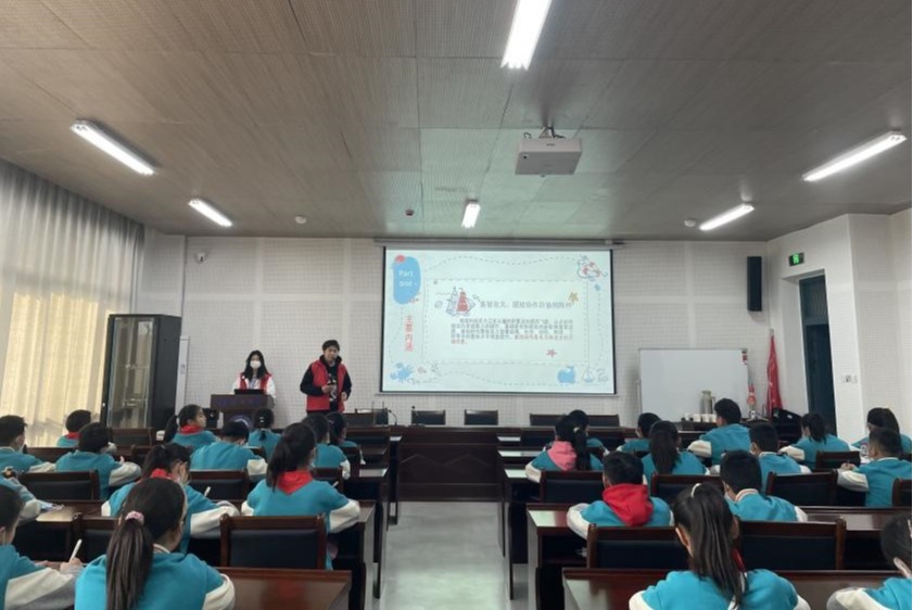 大手牵小手,实现宣讲与学习的双向互动。在明德楼208报告厅,“智行”志愿服务队队员王乐群同学通过PPT、小视频等方式向小学生们讲解科学家精神,并以建国以来涌现的优秀科学家为例,与小学生们一起领略老一辈科学家爱国、创新、求实、奉献、协同、育人精神,引导小学生们热爱科学,致敬前辈,埋下科学的种子。