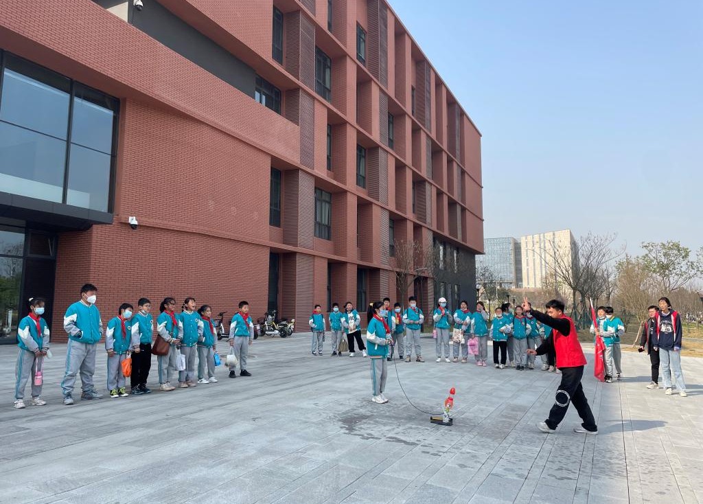 李明阳同学与小学生互动体验“水火箭”
