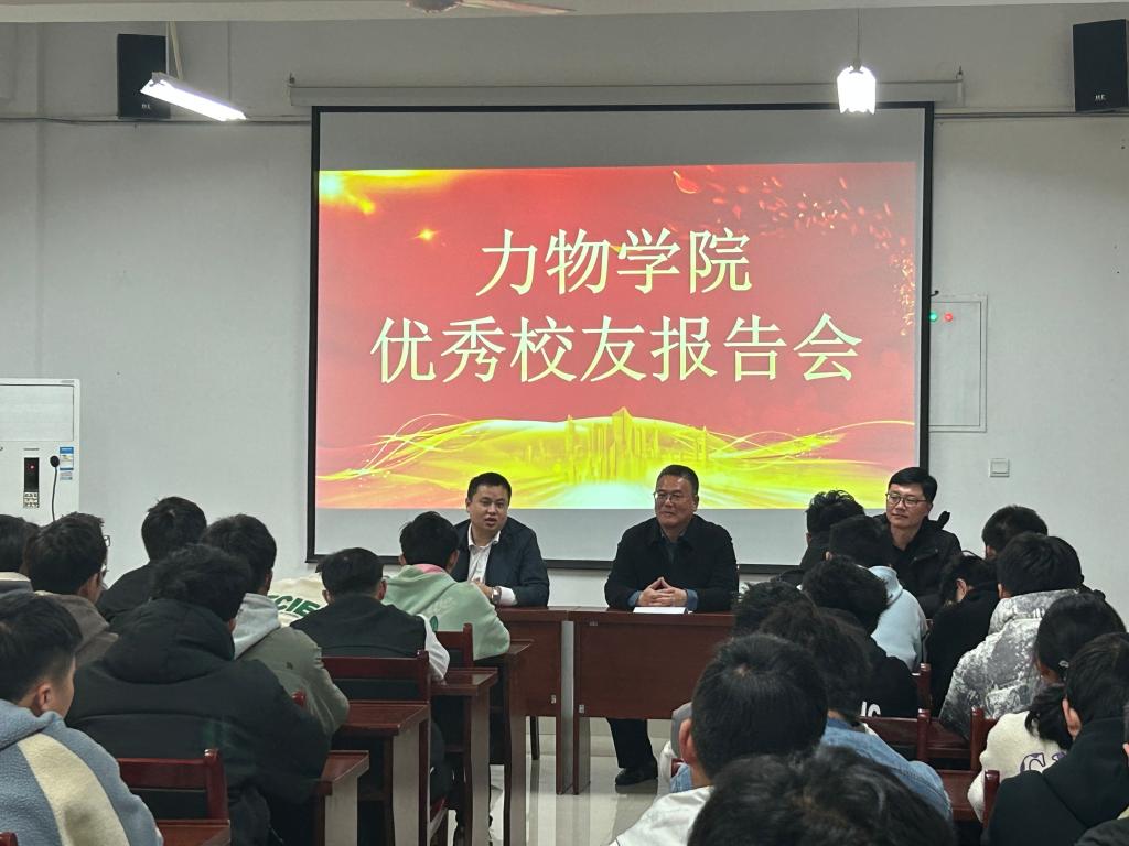 为加强校友与学院之间的联系,彰显优秀校友的榜样力量,激发2022级新生奋发图强的斗志,3月18日下午,力物学院在明道楼A321报告厅举行了优秀校友报告会。本次报告会邀请了两位工程力学专业优秀校友张伟和胡宝山进行经验分享。学院党委副书记孙东升、2022级辅导员和2022级工程力学专业同学参加报告会。报告会由孙东升主持。