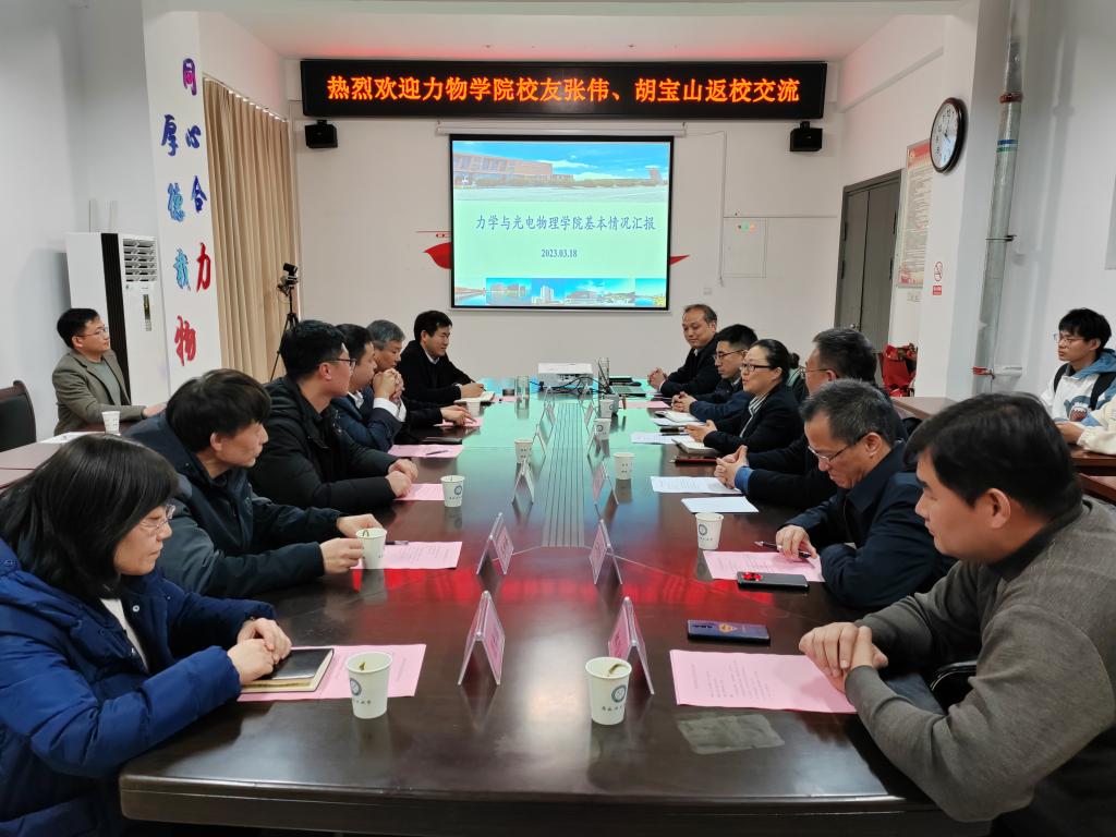 3月20日下午,力物学院在明道楼A320会议室召开返校校友座谈交流会。2008届校友、广发证券股份有限公司扬州国展路证券营业部总经理张伟,2010届校友、上海智平基础工程有限公司副总经理兼总工程师胡宝山,学院领导、系主任、老教师代表、学生代表等欢聚一堂,共叙校友师生情谊。会议由学院党委书记刘艳主持。