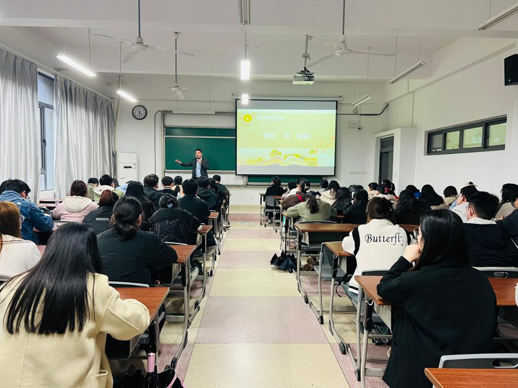 洪阳以“钻石职前课—经管类学生求职面试全攻略”为主题,提出“既往不恋、当下不杂、未来不迎”的科学就业观,强调适应能力、创新精神等核心素养的重要性,并从性格、价值观、能力、品质、形象等方面讲解如何做好自我认知管理和技能提升。他同时从面试经历和职场实际出发,详细介绍了简历制作、邮件投递、面试礼仪、沟通技巧等求职过程中的重要技能,为在场的师生上了一堂精彩的职业指导课。互动环节,同学们针对求职过程中的现实问题进行交流,洪阳一一给予解答,现场气氛热烈。