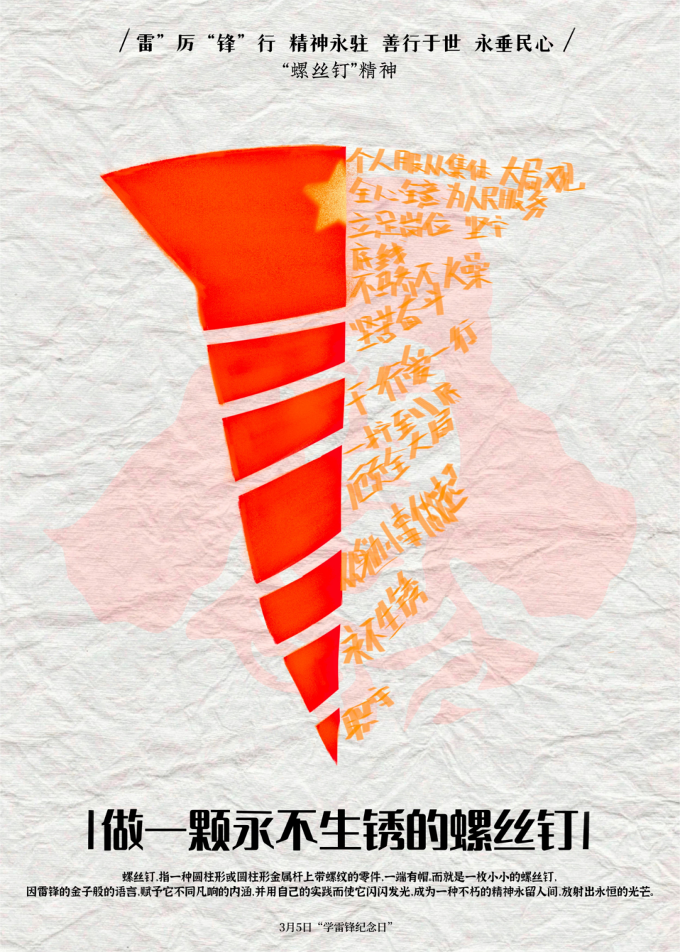 优秀海报作品《做一颗永不生锈的螺丝钉》(摄影:闪诚章)