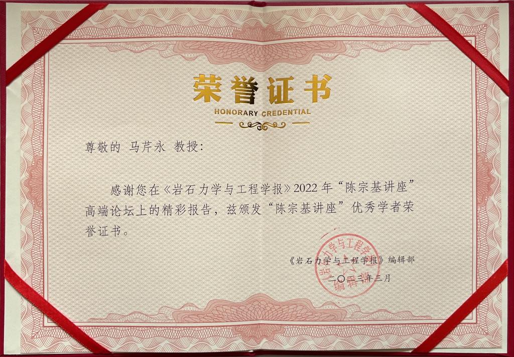 3月25日至26日,由岩石力学与工程学报、中国岩石力学与工程学会、中国科学院武汉岩土力学研究所、岩土力学与工程国家重点实验室主办,《岩石力学与工程学报》编辑部承办的《岩石力学与工程学报》2022年“陈宗基讲座”暨深部能源开发与储备中的岩石力学问题高端论坛在武汉召开。我校土木建筑学院马芹永教授受邀参加会议并主持26日上午的大会报告,同时被评为2022年“陈宗基讲座”优秀学者。