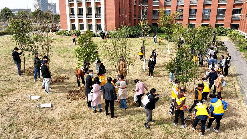 3月12日,在中国水日来临之际,时值植树节,由共青团淮南市委、淮南市少工委、中国少年出版社淮南分社、安徽理工大学地球与环境学院和共青团田家庵区委共同组织开展“大手拉小手·红领巾大学行”系列活动。50余位小朋友和家长与大学生党员志愿者参与添绿护绿。