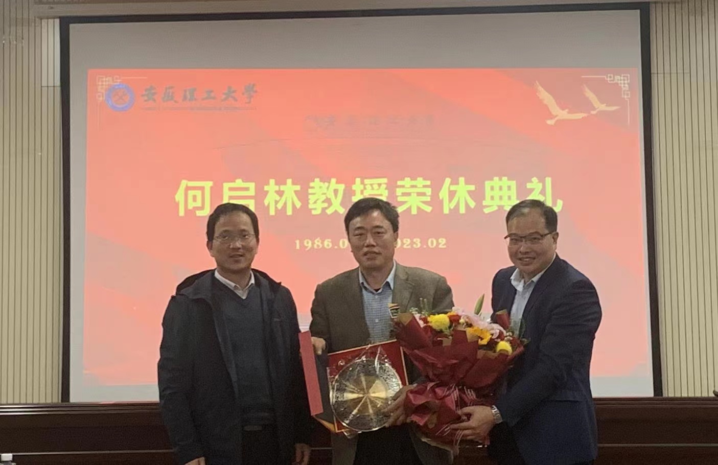 学院党委书记简要介绍了何启林教授工作经历,对他扎根教育一线,为学校和学院所作的辛勤工作和积极贡献表示感谢,对他高尚的师德师风、桃李满天下的成绩给予了高度评价,并祝愿何启林教授拥有丰富美满的荣休生活,希望荣休后常回学院看看。