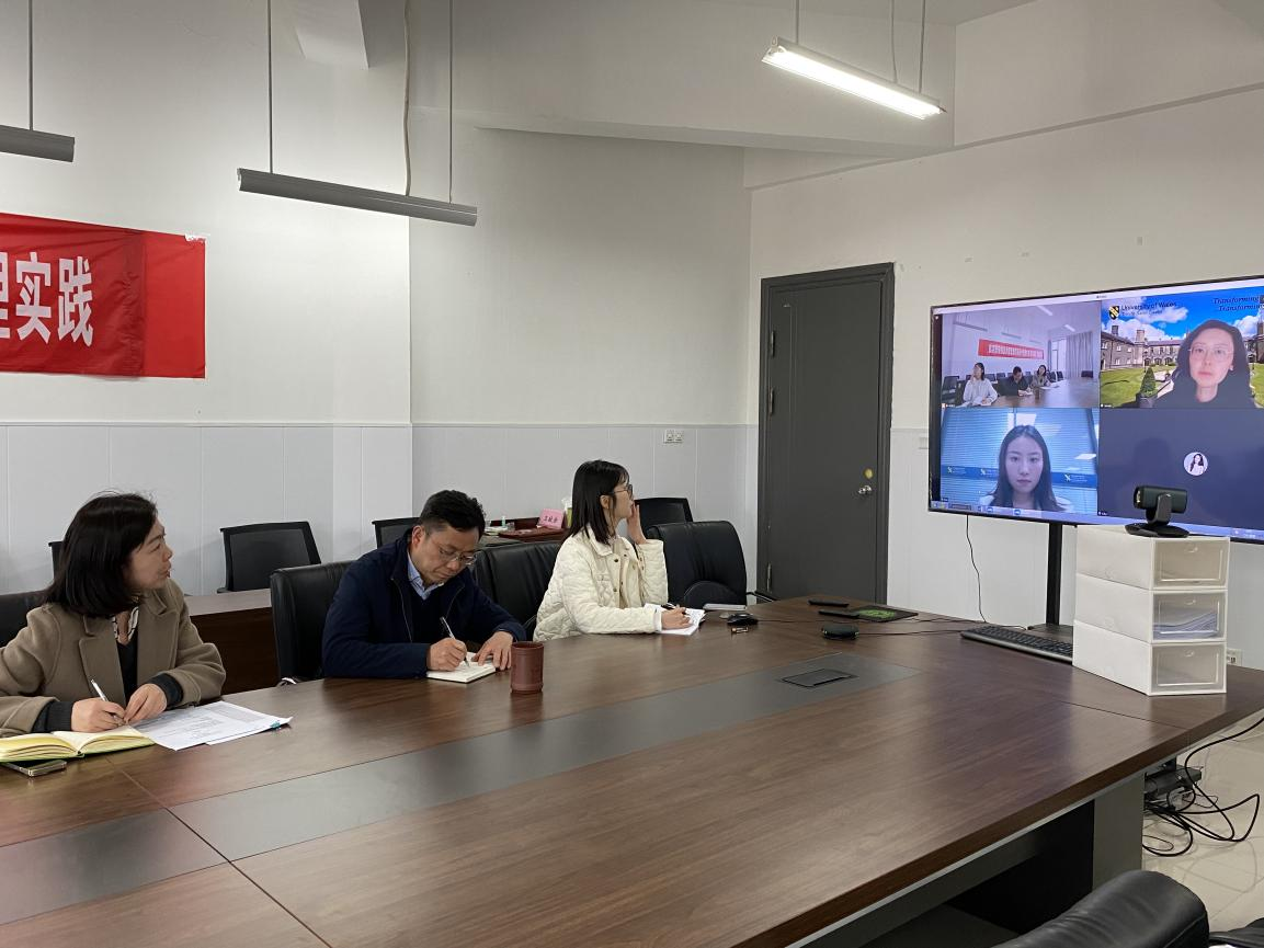 3月29日下午,外国语学院与英国威尔士三一圣大卫大学开展线上交流合作活动,威尔士三一圣大卫大学东亚办公室北京办事处主任张弦,外国语学院院长王宗华、副院长周宁出席会议。