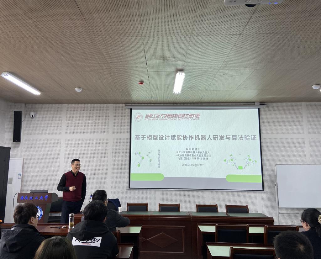 4月6日上午,应人工智能学院邀请,合肥工业大学甄圣超副教授在明德楼(东)208学术报告厅作了题为《基于模型设计赋能协作机器人研发与算法验证》的学术报告。人工智能学院教师和研究生共80余人听取报告。