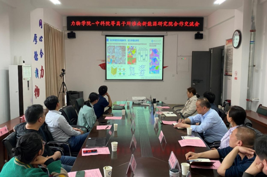 4月13日下午,中国科学院合肥物质科学研究院等离子体物理研究所淮南新能源研究中心主任文伟、副主任杨乐一行5人应邀来力物学院调研交流,在明道楼A320会议室举行交流座谈会,副院长(主持工作)圣宗强及相关教师参加了会议。会议由副院长高娟主持。