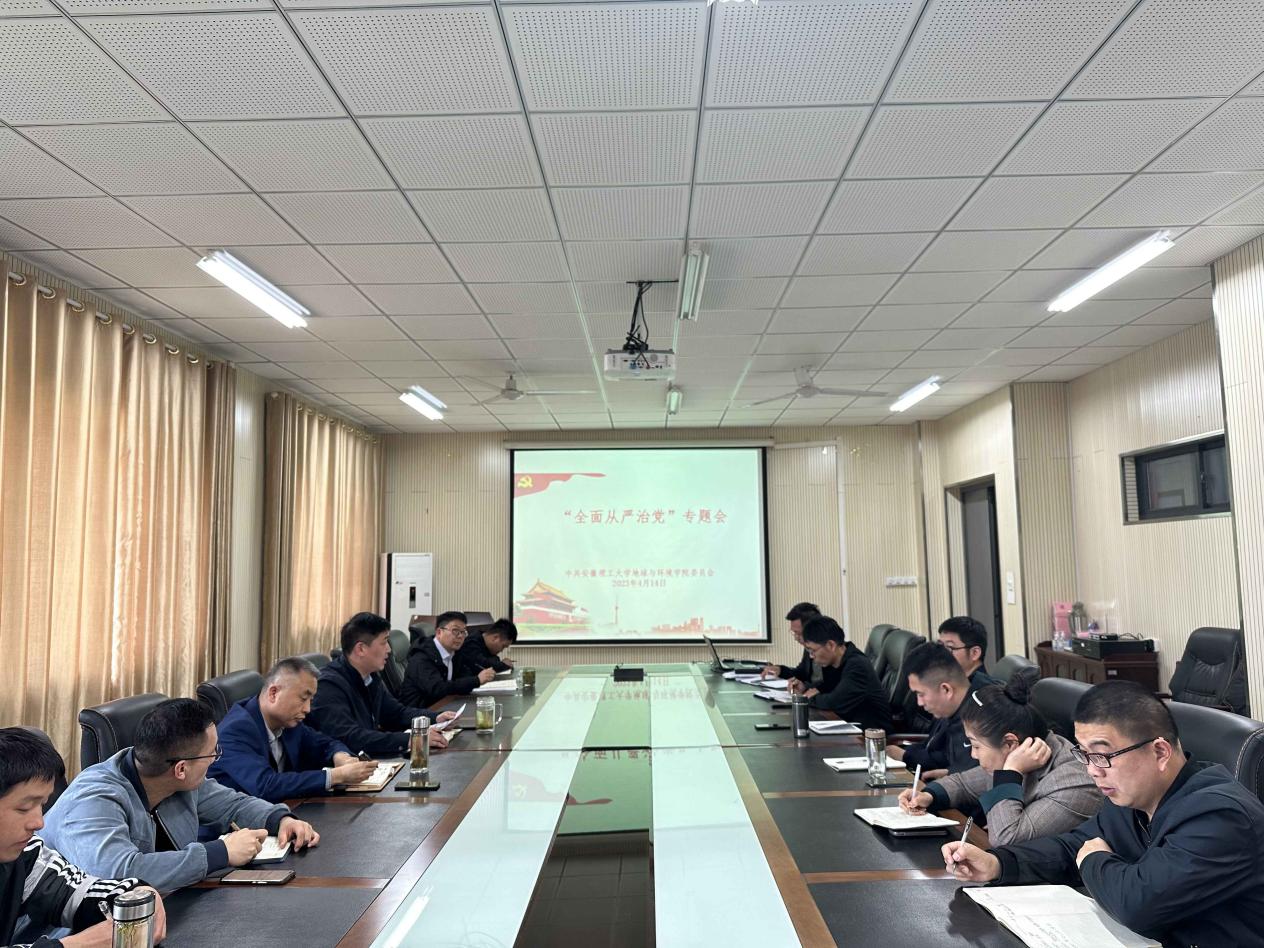 4月14日下午,地球与环境学院在静远楼B414召开2023年全面从严治党工作会议,学院领导班子成员、党委委员、党支部书记、内设机构负责人、辅导员参加会议。会议由学院党委书记陈楠主持。