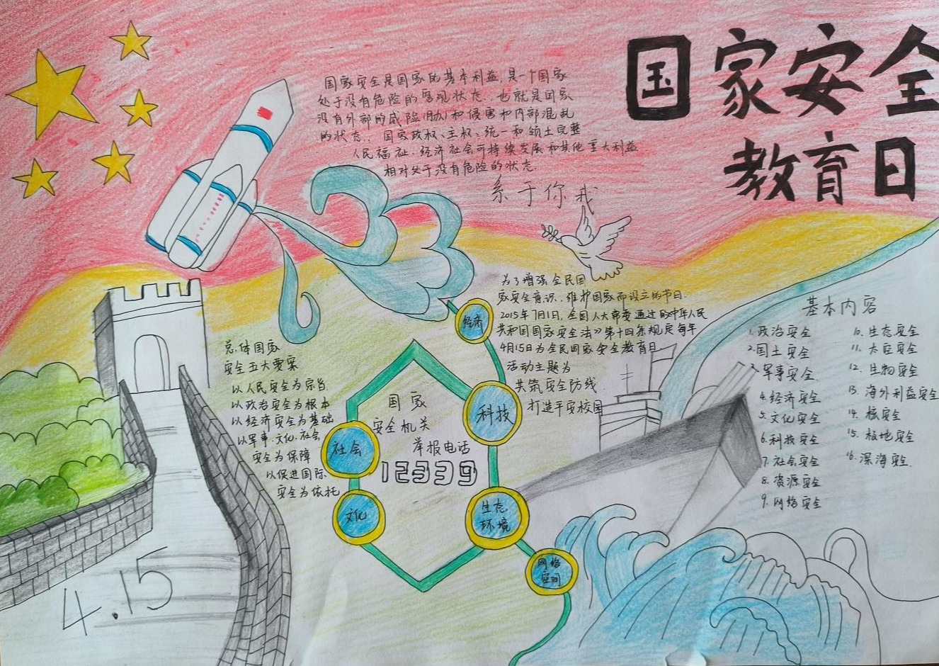 力物学院围绕总体国家安全观和国家安全各领域,利用线上线下多平台加大相关知识和活动的宣传推动力度,通过主题班会、手抄报绘制宣讲国家安全教育知识,通过微信公众号、易班平台推送国家安全教育主题推文,广泛开展多形式主题教育,引导师生掌握有关知识和技术,帮助师生随时随地学习相关知识。
