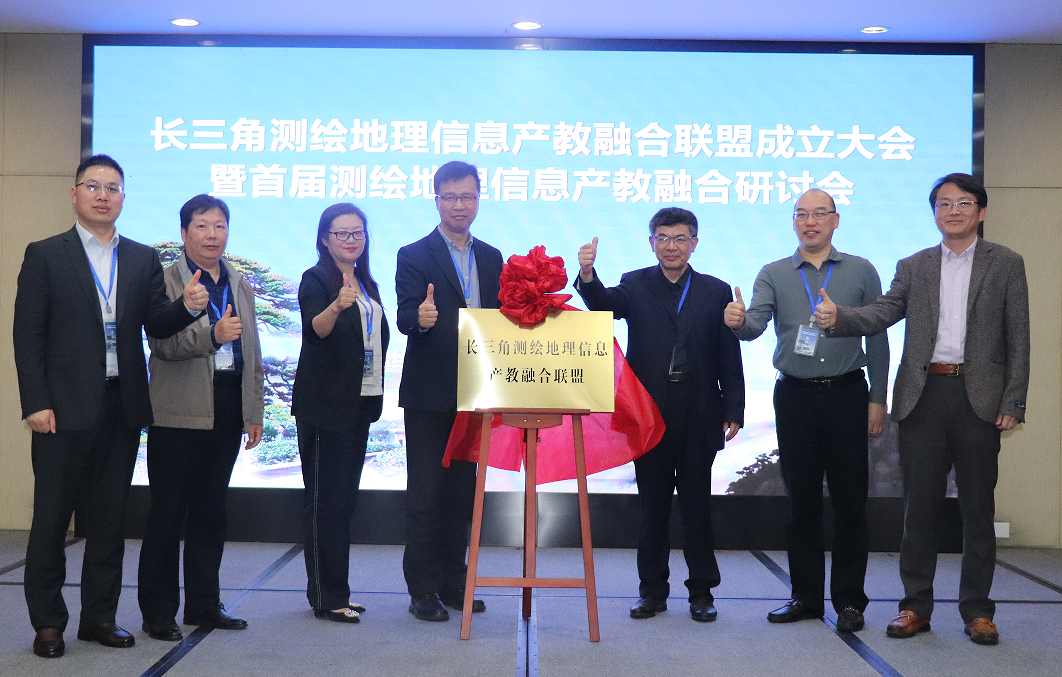大会上,当选的理事长、副理事长单位的领导共同为联盟揭牌,标志着长三角测绘地理信息产教融合联盟正式成立。