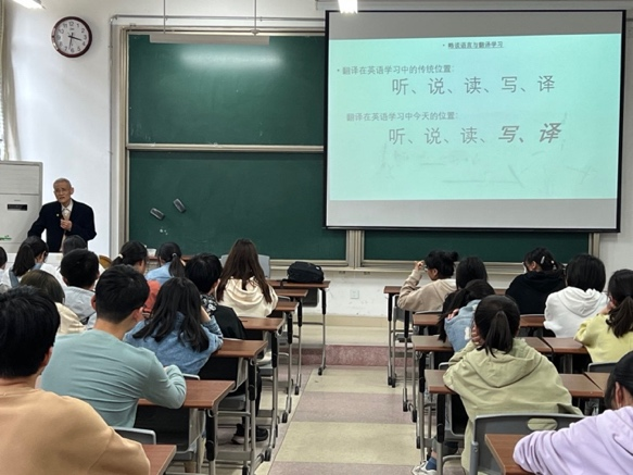 在此后进行的题为“新时代的翻译教师更应自强”的讲座中,两位教授分别就翻译教学以及教师职业发展与师生展开进一步交流,逐一解答青年教师在翻译教学、科研以及工作学习过程中遇到的问题,加深师生对于翻译意义和作用的认识,帮助师生明晰未来研究方向和职业规划。