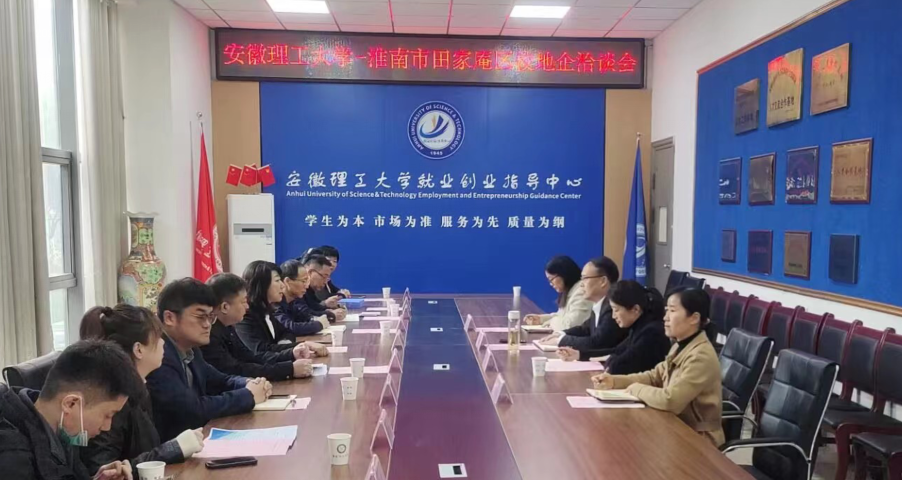 就业创业指导中心负责人对张曙晖一行来校交流表示欢迎,并介绍了学校概况、人才培养、招生就业等方面基本情况,张曙晖介绍了淮南市田家庵区产业布局谋划、淮南现代产业园区及安成经济开发区建设、企业发展前景等情况。