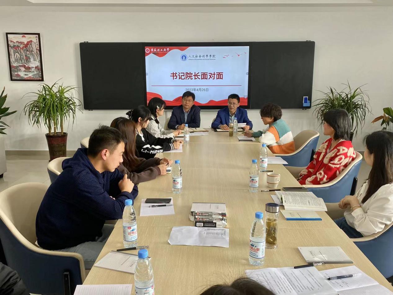 为深入学习贯彻习近平新时代中国特色社会主义思想,进一步贯彻落实学校“三有”育人理念,切实做到“心中有学生”,人文学院领导班子成员带头深入基层一线,畅通与学生沟通交流渠道,于4月26日在学院A321举办“书记院长面对面”活动。院长方胜、副院长代大为和学生代表20余人参与此次活动。