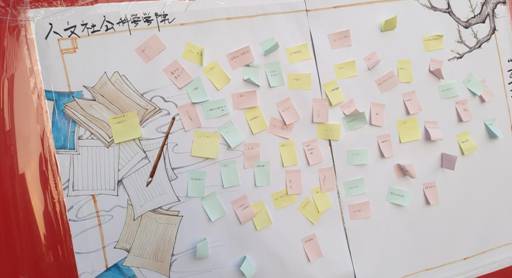 为推动学生养成阅读、写作的习惯,4月伊始,人文学院举办“互享书香,书香致远”好书推荐活动。活动要求参加者在指定地点写下自己推荐的书目并贴于活动展板上,鼓励同学们用钢笔、毛笔等手写方式,摘记下阅读经典书籍中触动自身的段落语句。同学们争先写下喜爱的书籍,将阅读心得分享给他人,增强大家的阅读兴趣。