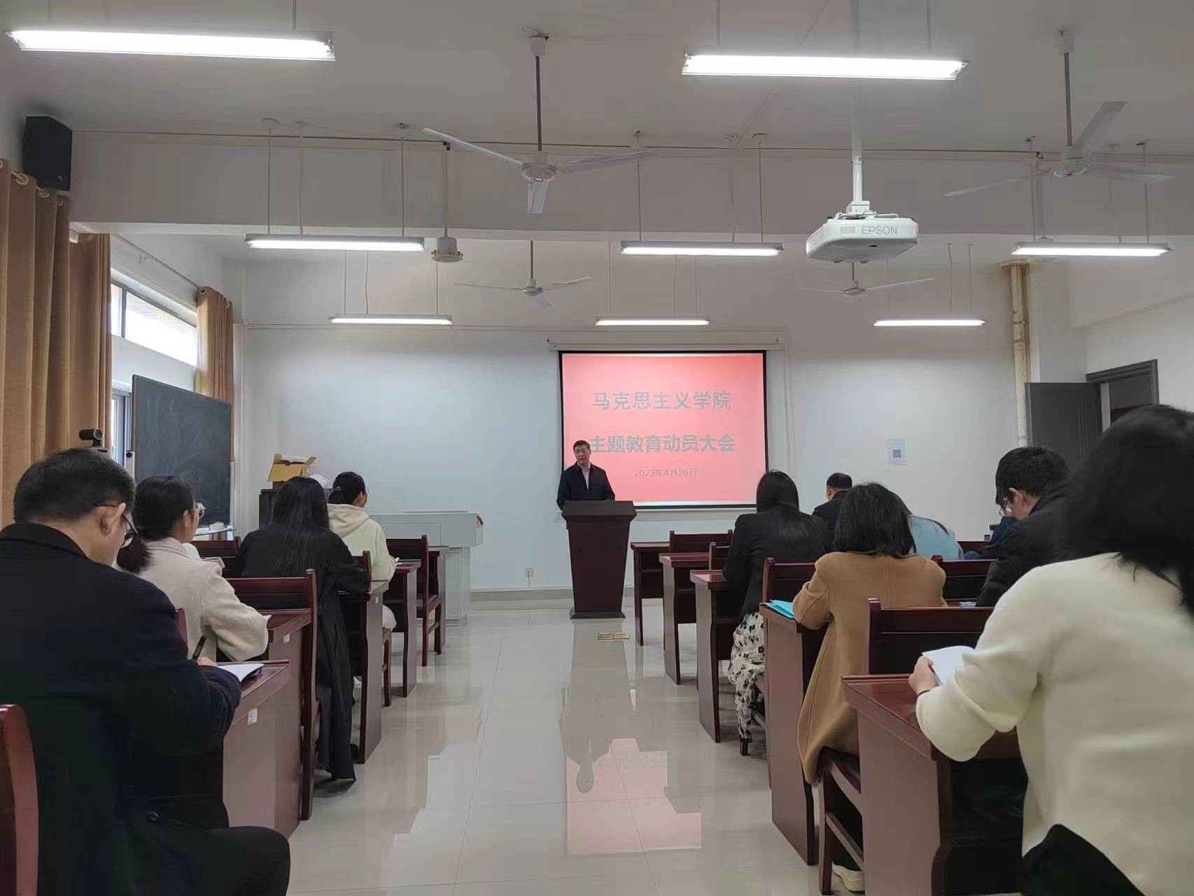 4月26日上午,马克思主义学院在崇智楼A411会议室召开学习贯彻习近平新时代中国特色社会主义思想主题教育动员大会,动员部署学院主题教育。会议由学院党委书记孙功主持,学院领导班子成员、全体党员教师参加了会议。