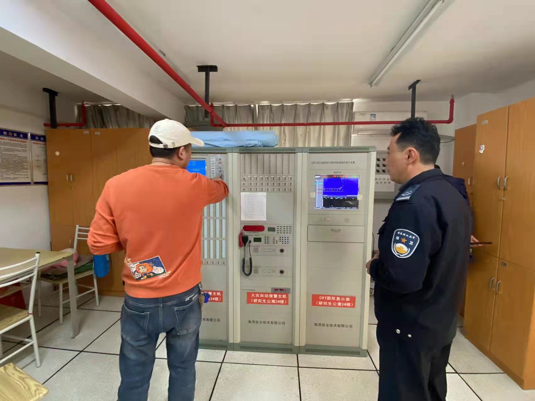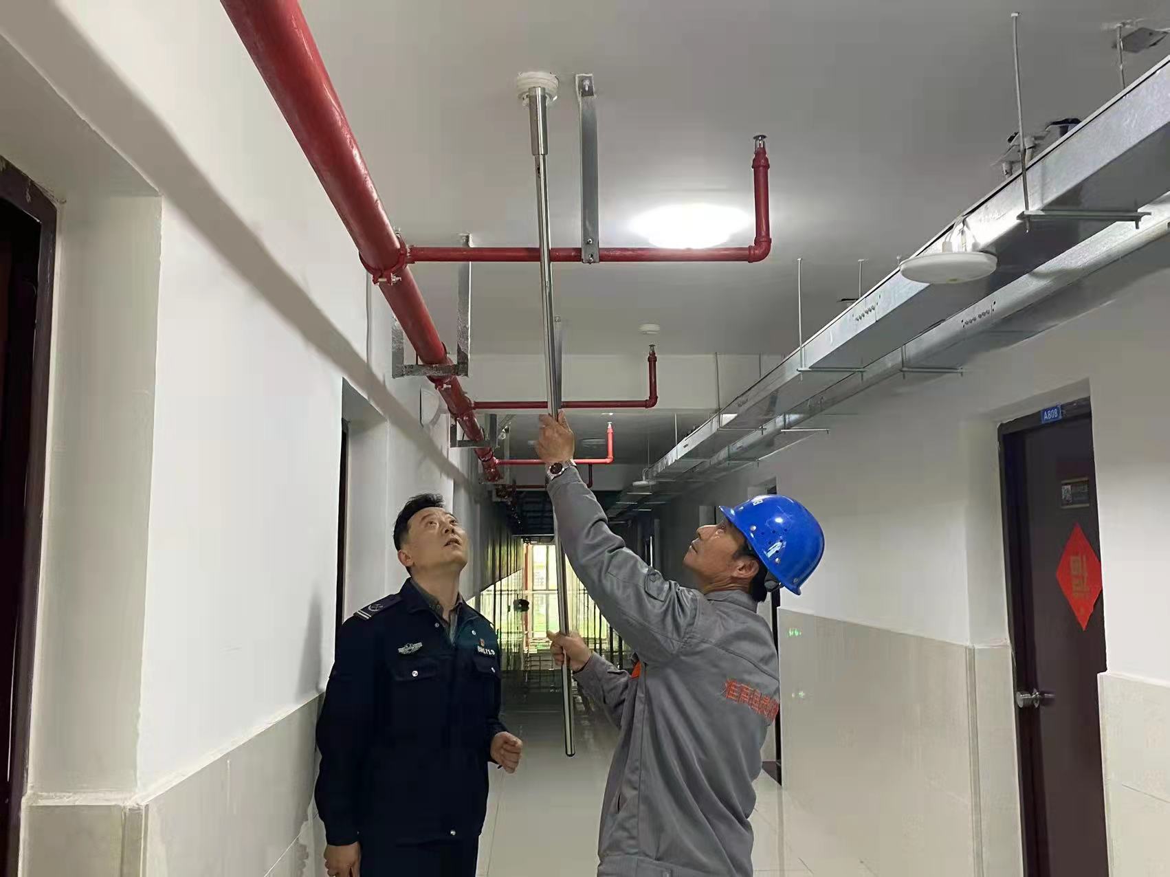 为确保节假日期间校园消防设施运行正常,学校组织消防设施维护保养服务机构对校园消防设施运行情况进行测试。