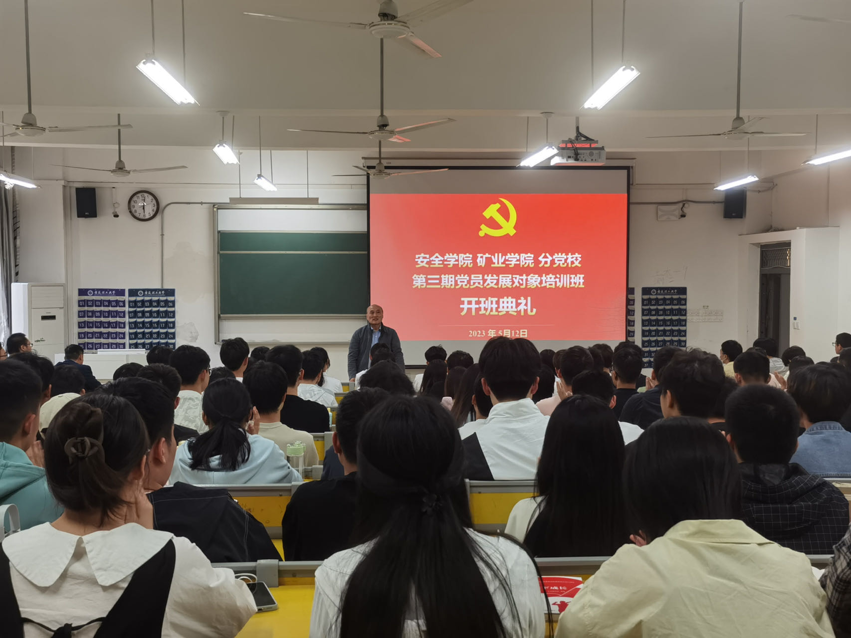 5月12日晚,安全科学与工程学院、矿业工程学院分党校第三期党员发展对象培训班在天工北214教室正式开班,两学院共143名学员参加本次培训。