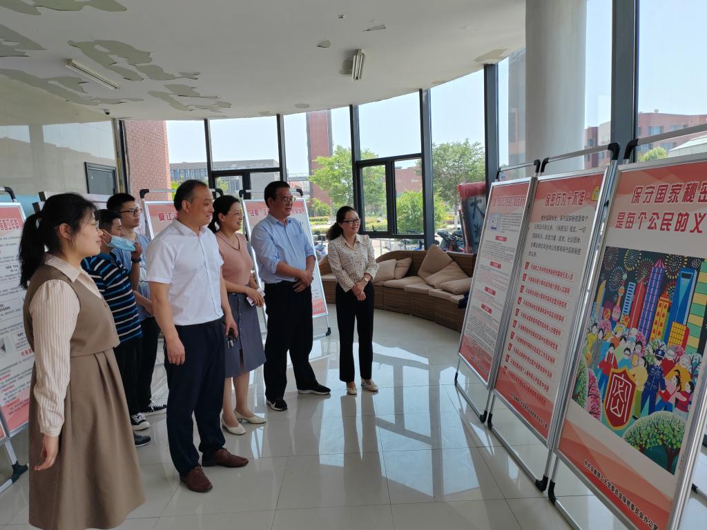 观看安全保密展板。学院领导班子和师生在明道楼一楼大厅观看“团结奋斗新征程,保守秘密靠大家”为主题的巡展活动宣传展板。丰富的图片和详实的文字,列举了大量保密工作知识和预防泄密的建议。大家纷纷表示,要不断加强保密知识学习,切实增强做好保密工作的责任感和使命感,为维护国家安全和社会稳定贡献自己的力量。