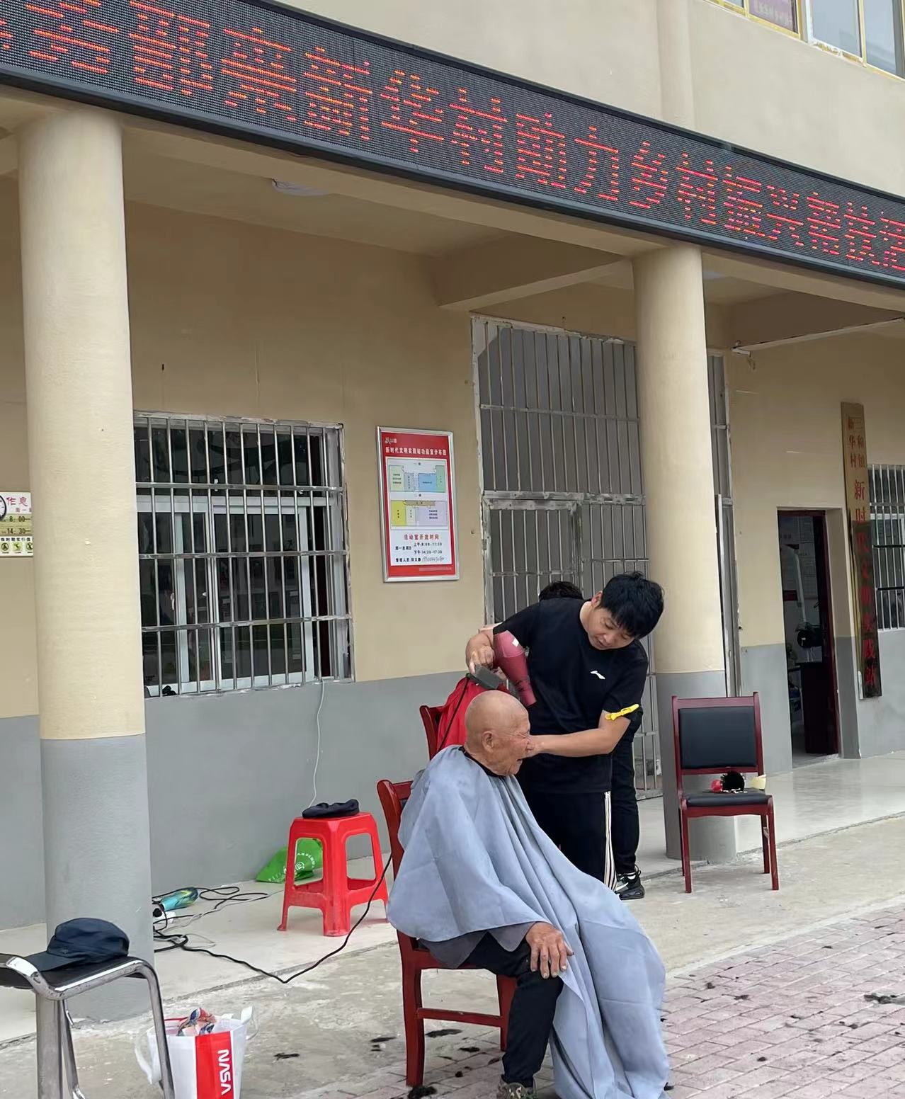 座谈会前,总务部慰问了两户困难群众,组织3名理发师给村民开展义务理发活动。