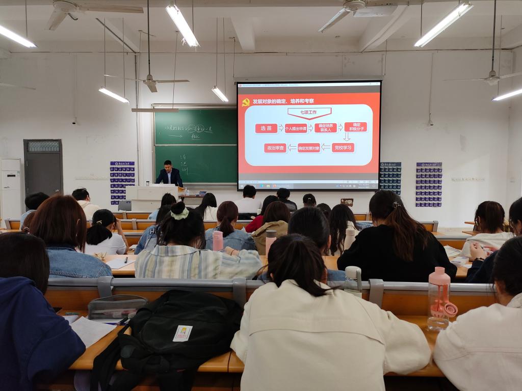 本次培训设置24个学时,集中授课安排6个专题,共计12学时,实践学习4个学时,社会服务4个学时,学员个人自学不少于4个学时。学院2022年下半年和2023年上半年经团组织“推优”的入党积极分子、学生组织骨干成员共计317人参加培训。培训分为两个教学班级,坚持理论与实践相结合,采用集中授课、分组讨论、素质拓展、社会实践等形式开展。授课内容主要包括党的二十大精神解读、党章党规和党的基本知识、党的性质宗旨、党员发展程序、党史学习教育、理想信念教育、习近平总书记关于青年工作的重要论述精神、优秀共产党员事迹学习、学生干部的工作方法等内容。