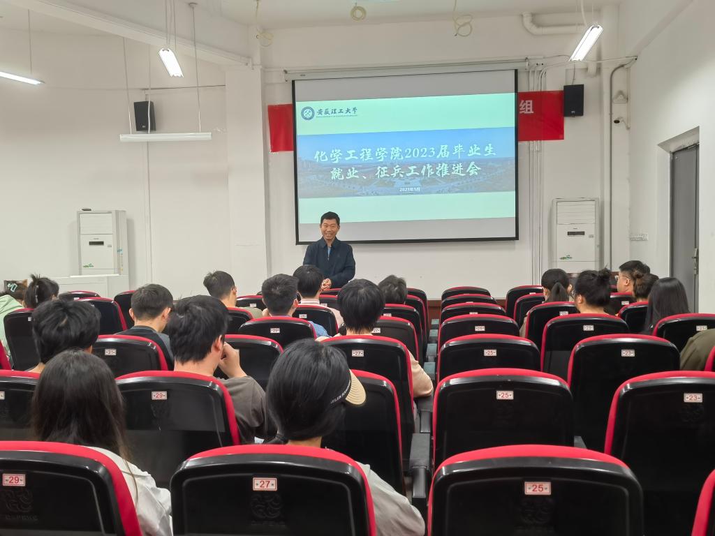 为进一步做好2023届毕业生就业征兵工作,全力推动毕业生高质量就业,5月24日上午,化学工程学院在崇礼楼东102报告厅召开就业、征兵工作推进会。学院党委书记徐泽绵、全体辅导员和未就业学生参会;同时学院邀请了武装部徐意刚老师对参军政策作了专题讲解。推进会由学院党委副书记曹秀军主持。