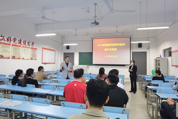 为进一步加强医学院青年教师队伍建设,夯实青年教师教学水平和业务素质,激发教学热情,5月24日,医学院在崇仁楼B119教室举行2023年度青年教师基本功竞赛。竞赛由副院长田晔主持,由校本科教学、研究生教学督导组成员及医学院本科教学督导组成员及往年该赛事获奖者等担任本次竞赛评委。