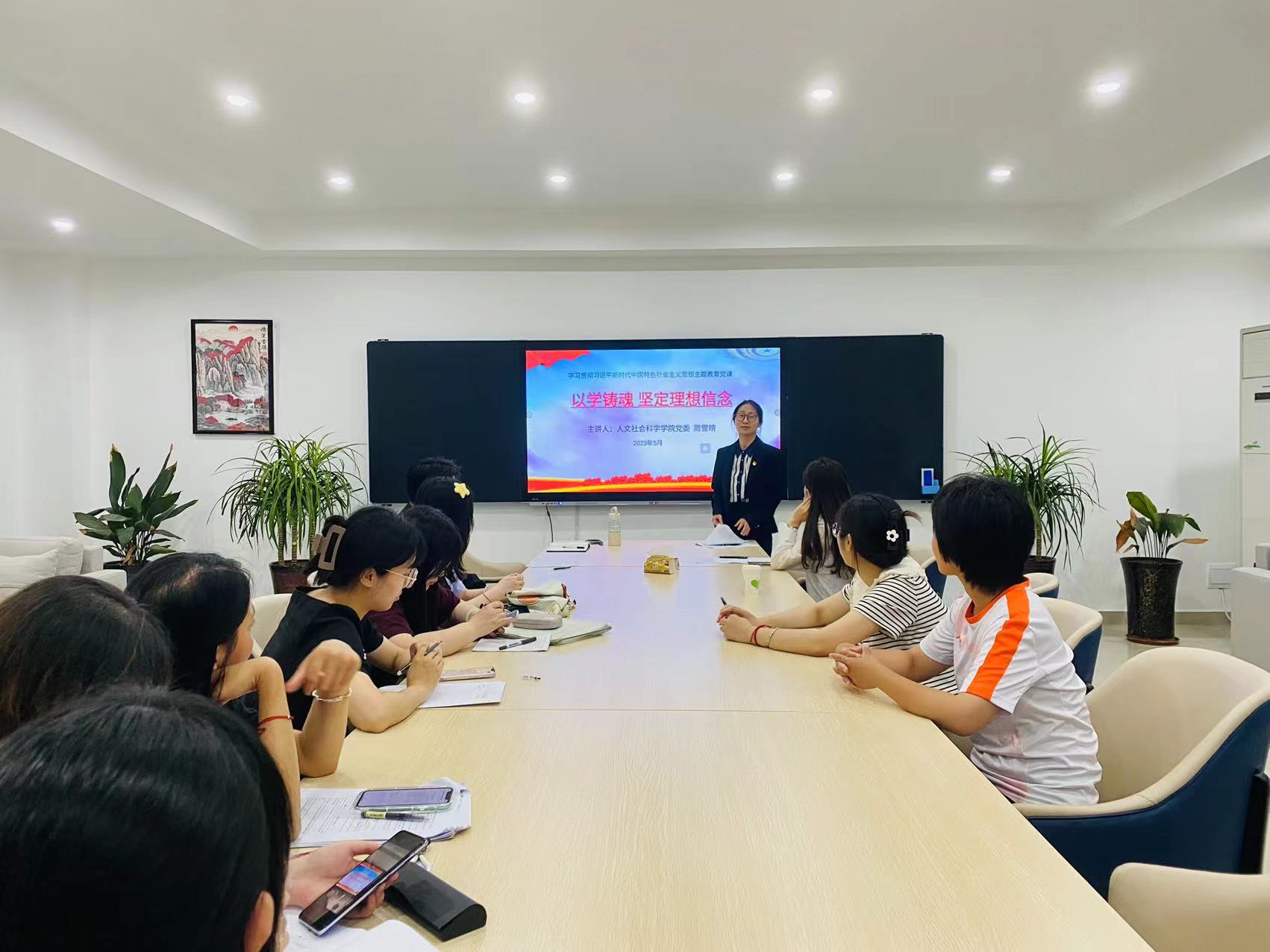 5月29日晚,人文学院党委副书记周雪晴在崇智楼A321为学生第一党支部讲授学习贯彻习近平新时代中国特色社会主义思想主题教育专题党课。支部全体党员同志参加。