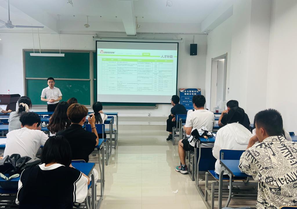 为落实2023届毕业生就业工作推进会议精神,抢抓毕业生离校前的就业关键节点,搭建毕业生与用人单位的便捷沟通渠道,6月1日下午,经济与管理学院与外国语学院在经济与管理学院东104教室共同举办校园招聘宣讲会,邀请宁波高松电子有限公司来校招聘,现场提供国际客户经理、国内客户经理、会计助理、HR实习生等职位50个。两学院分管学生就业工作负责人、2023届毕业班辅导员、市场营销、人力资源、财务管理、英语、日语等专业的2023届毕业生和2024届部分毕业生参加。