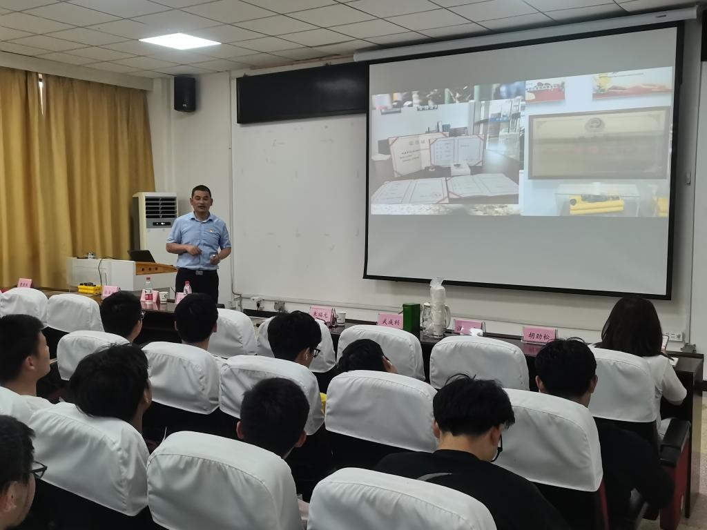 张建华警官以一枚炸弹模型向同学们说明定时炸弹的工作原理,充分引起同学们的兴趣,并结合自身丰富的工作经历现身说法,介绍了自入警以来执行的重大任务,案例生动,引人共鸣。他深情回顾了自己的求学生涯,勉励同学们珍惜当下,不断学习专业知识,强化专业技能,脚踏实地担当时代复兴重任。他强调,奋斗是青年应具备的精神品质,只有努力奋斗才是最佳答案,同时,要学会学习,善于学习,持续学习,敏于思考发现,勤于实干苦练,勇于责任担当。最后,他介绍了弹药工程与爆炸技术专业在公安系统内能够从事的岗位及招聘流程,使同学们对本专业的发展前景有了系统认识。