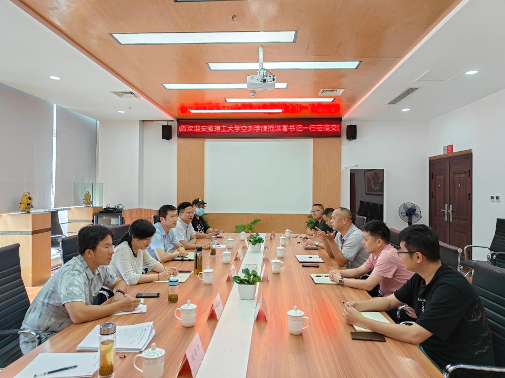 范洪喜一行首先来到安徽省测绘总院,与安徽省测绘总院党委副书记、总工程师张耀波,安徽省地质测绘技术院副院长王绍祥,合肥市测绘院院长刘家祥及安徽省测绘总院下属各单位负责人举行座谈。各单位负责人分别介绍了各自单位的发展历史、技术力量、人员结构、业务范围和主要业绩等情况。范洪喜介绍了学校和学院建设发展基本情况、企业所需对口专业的建设成果及学生发展与就业意向等。王磊就学院的专业建设、师资队伍等进行了介绍。