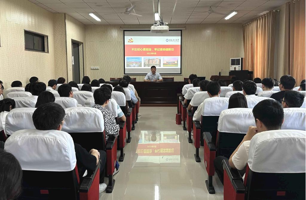 会上,陈楠为全体毕业班党员讲授题为“不忘初心勇担当,牢记使命建新功”专题党课。他从坚守政治品格、坚定使命担当、坚决廉洁守纪三个层面,强化毕业生党员的身份意识、责任意识、纪律意识;从温家宝《地质笔记》、学院优秀校友的故事中,强调毕业生党员要立足岗位、脚踏实地,在基层一线磨砺成长。他希望毕业生党员深化习近平新时代中国特色社会主义思想学习,深刻领悟其中的世界观和方法论,扎根中国大地服务中国式现代化伟大实践,用实干实绩为党争光、为校添彩。