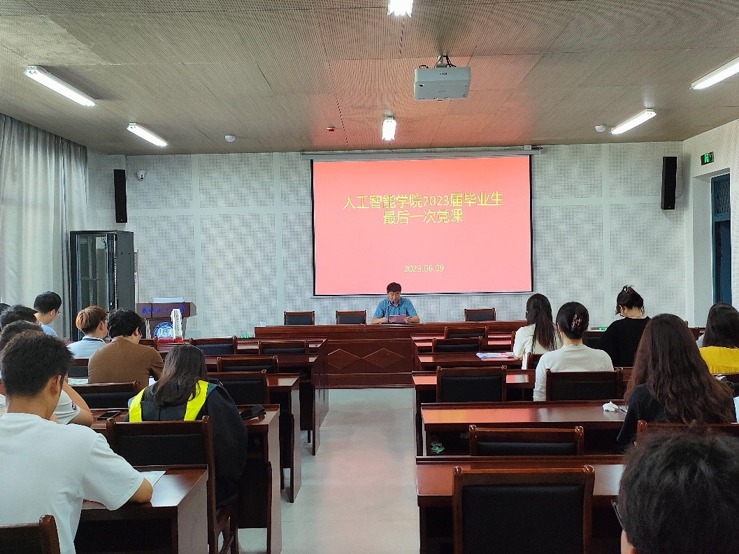 6月9日下午,人工智能学院在明德楼208报告厅举行2023届毕业生党员“在校最后一次党课”活动。党课由学院党委书记张旸主讲,学院毕业班辅导员、2023届全体毕业生党员到会听取了此次党课。