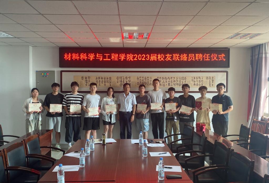 为加强校友与母校的联系,更好地服务校友、服务母校,促进学校和校友事业的共同发展,6月14日,材料科学与工程学院2023届校友联络员聘任仪式在崇义楼B306会议室举行。学院党委书记夏邦权,党委副书记陈向君出席聘任仪式,毕业班辅导员以及学院毕业班校友联络员参会。