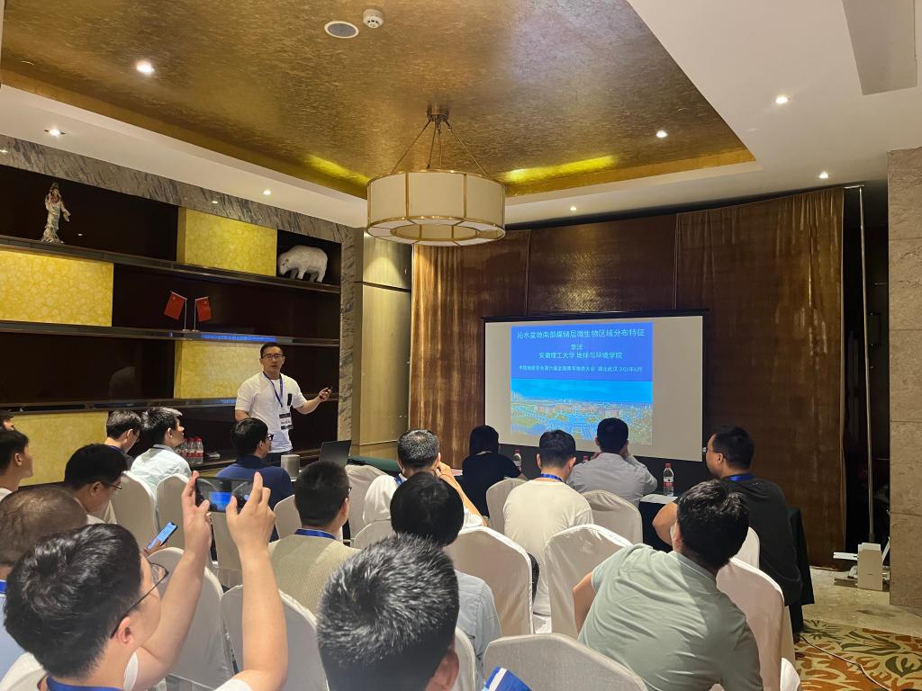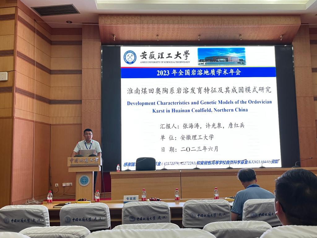 吴海波副教授在“非常规油气地球物理技术前沿”分会场作题为“煤层气储层地震岩石物理建模与孔裂隙参数反演”学术报告,并评为优秀报告;李洋博士在“煤与煤系资源地质科技进展”分会场作题为“沁水盆地南部煤储层微生物区域分布特征”学术报告;张海涛博士在“岩溶发育演化与全球变化”分会场作题为“淮南煤田奥陶系岩溶发育特征及其成因模式研究”学术报告;杨婷婷博士研究生在“岩溶发育演化与全球变化”分会场作题为“华北煤田南缘岩溶发育特征及成因模式研究—以淮南煤田为例”学术报告。