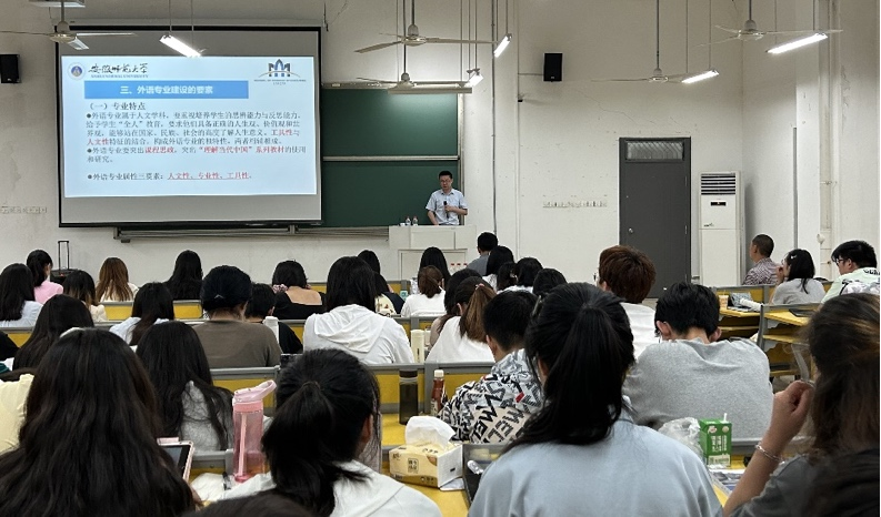6月16日上午,应科研部和外国语学院邀请,安徽师范大学外国语学院院长、博士生导师张孝荣教授在明理106教室作题为“外语专业建设以及外语人才培养”学术报告。学院院长王宗华主持报告会,学院青年老师、研究生及本科生200余人听取报告。
