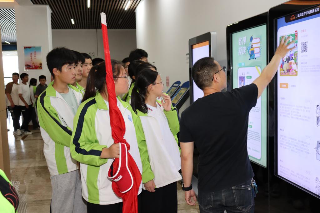 随后,参观师生在工作人员带领下来到学校图书馆,从6楼逐楼层向下,分别参观了多功能会议室、期刊预览室、书籍典藏室、多媒体教室、学生自习室,在大厅观看学习了自动化借书设备的操作。从纸质书籍快速上下架,到多样化电子资源的查阅,再到自动智能化借还书设备,学校图书馆科技含量满满,用科技与温度实实在在服务师生与社会。