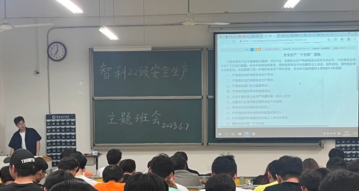 6月7日,学院各年级辅导员召开安全教育主题班会,辅导员们从“为什么要开展安全教育主题班会”“我们要从哪些方面重视安全”“如何提升安全意识”等方面结合校园案例,要求学生严格执行学生管理“四项禁令”,维护自身财产和人身安全。